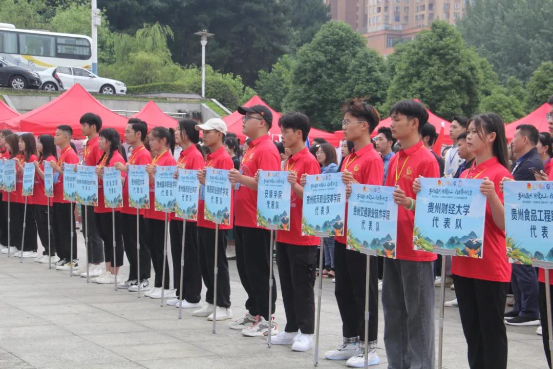 上午9:00决赛开幕式准时在校前广场举行。贵州开放大学(贵州职业技术学院)党委副书记龚辉,党委委员、副校长汪红,共青团贵州省委学校部副部长刘艳出席开幕式,贵州电子商务云运营有限责任公司地方事业群总经理黄翰林,贵州省短视频电商直播行业协会秘书长屈晓朗,贵州省省管专家、贵州佰仕佳科技集团董事长易永祥,贵阳广电传媒集团总经理杨萍,贵州和云集团和云融智科技有限公司总经理李佳静,贵州苗姑娘控股集团副总经理何锦康以及来自全省25所高等院校的40支参赛队伍参加开幕仪式,开幕式式由贵州开放大学商贸学院院长袁德臻主持。