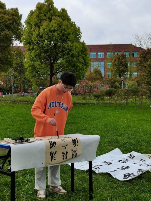 梵天书画协会在校园内举办了“写清明,寄哀思”主题活动。一群爱好书法的学生,在科研楼前的草地上,在阳光下尽情书写清明节的相关诗词,书写自己对“清明”的理解和感受。同学们以自己的方式深深缅怀革命先烈,传承革命精神。参加活动的同学表示,今天的安宁来之不易,在接下来的学习与生活中自己将努力奋斗,不辜负先烈们用生命换来的每一个“今天”。
