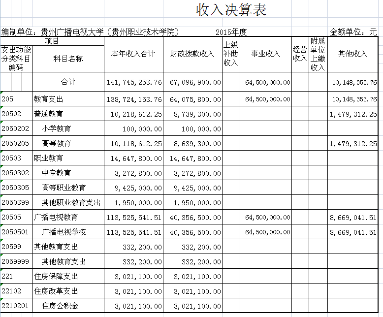 2015年收入决算表