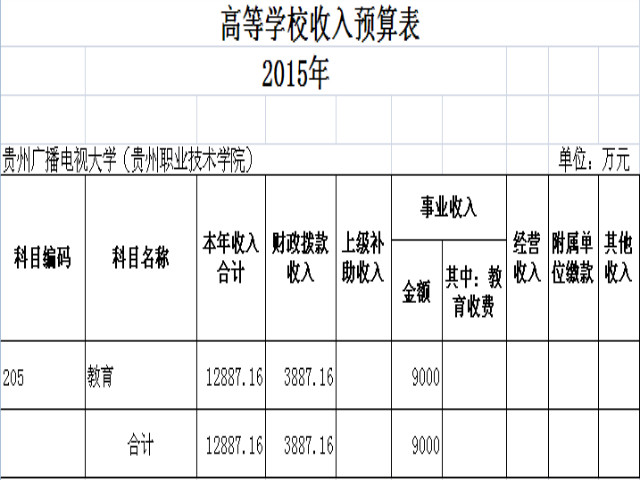 高等学校收入预算表2015年度