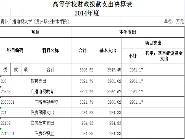 高等学校财政拨款支出决算表2014年度