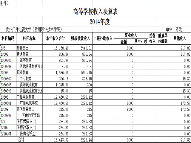 高等学校收支决算总表2014年度