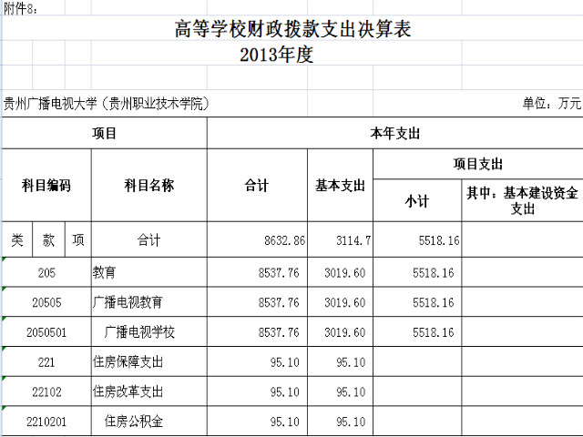 高等学校财政拨款支出决算表2013年度