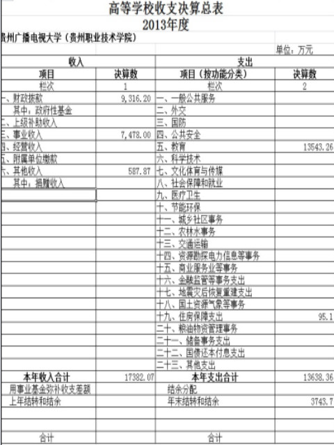 高等学校收支决算总表2013年度