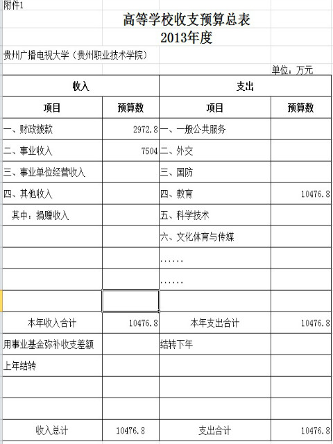 高等学校收支预算总表2013年度