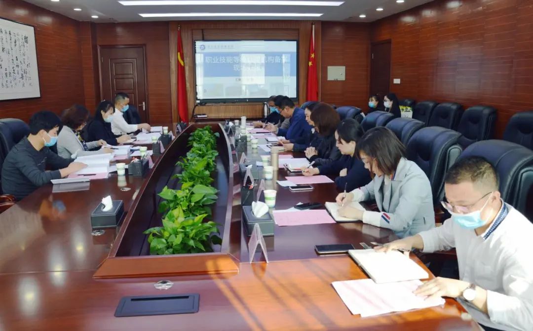 3月17日下午,学校申报职业技能等级认定机构备案现场检查评估会在行政楼六楼会议室召开。由省“双证书”行动工作专班、贵州护理职业技术学院、毕节医学高等专科学校、贵州经贸职业技术学院相关同志组成的全省职业院校学生“双证书”行动机构备案专家评审会专家组以及贵州职业技术学院党委委员、副校长汪红出席会议,各二级学院院长或分管教学(实训)副院长及教务处(实训中心)有关负责同志参加会议。