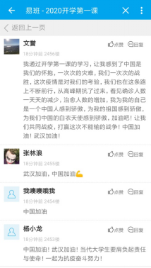 网络直播课程深受广大同学喜爱,同学们积极分享“网络第一课感言”。