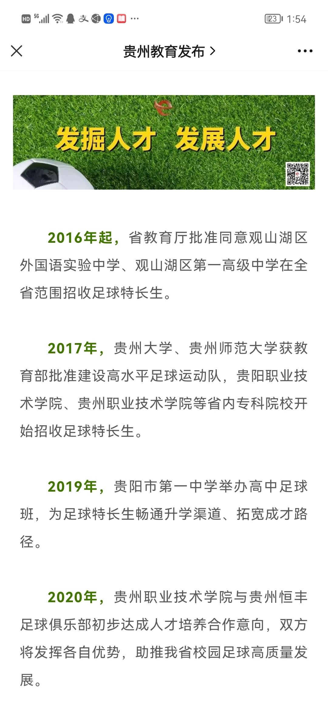 本次报道,以我校即将代表贵州省、同时作为贵州省第一支校园足球学生队伍参加中国足球协会会员协会冠军联赛为引题开展报道,对我校近几年足球项目建设工作进行了详细的介绍,并就我校探索“职业教育”同“职业体育”相融合,促进学生专业技能多元化发展的教育模式给予了高度的认可。