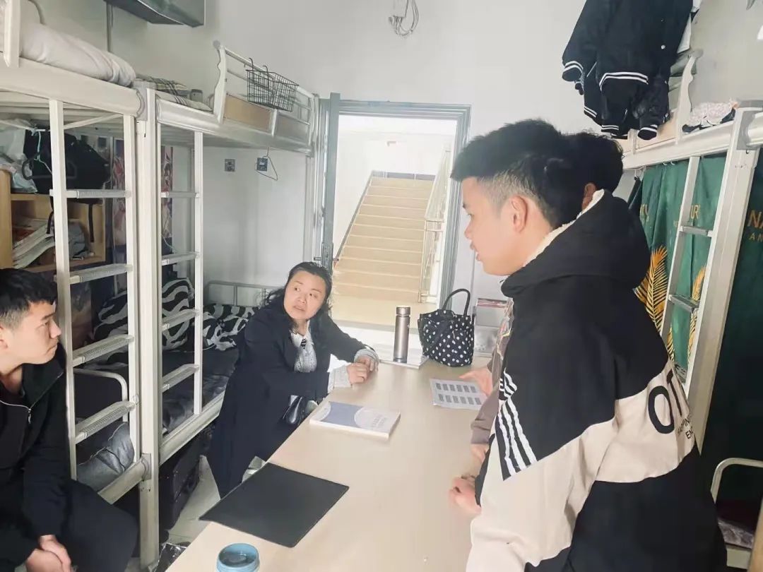 专业教师和辅导员一起深入学生寝室,和同学们亲切交谈,关心了解他们的学习生活情况,叮嘱同学们要严格遵守学校规章制度和疫情防控期间校园管理规定,注意加强个人防护、寝室卫生和安全意识,保持良好的学习生活习惯,顺利完成各项学习任务。