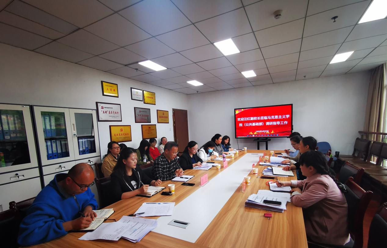 2022年4月29日下午,学校党委委员、副校长汪红带领教务处、质量办部门负责人深入马克思主义学院(公共基础部)开展调研工作。马克思主义学院(公共基础部)党政负责人、办公室主任、教研室主任、教学秘书、教师代表及相关人员参加了调研座谈。