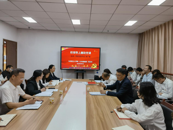 为持续推进学校良好的政治生态,扎实推进全面从严治党向纵深方向发展,5月6日上午,学校党委书记宋广强到马克思主义学院党总支为全体党员教师上了一堂生动的廉政党课。本次活动由马克思主义学院党总支副书记、院长程守艳主持。