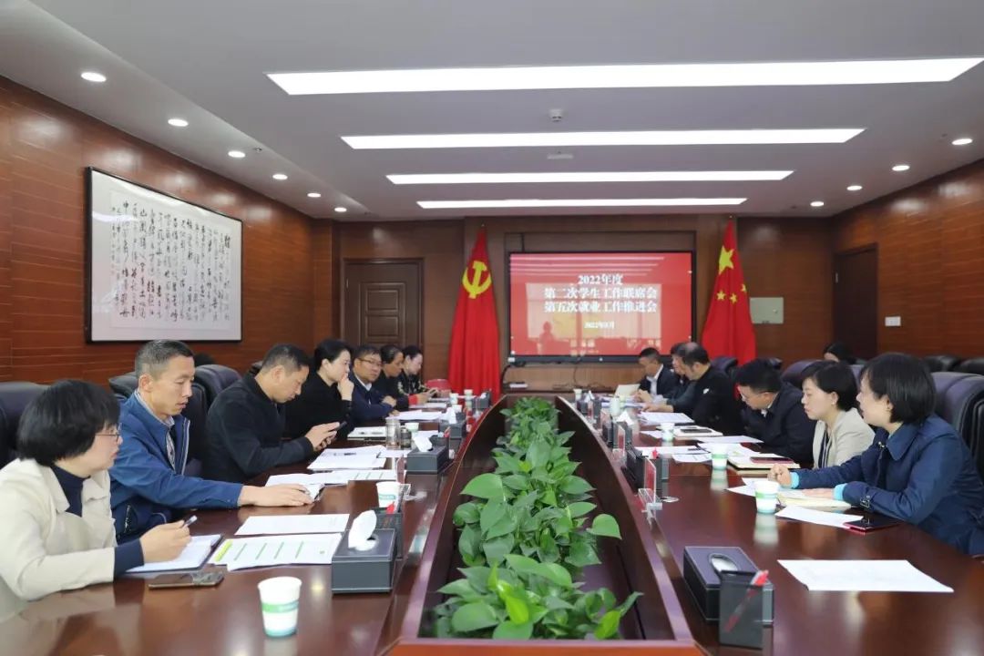 5月17日上午,我校在行政楼第二会议室召开了2022年度第二次学生工作联席会、第五次就业工作推进会。会议由学工部部长罗之军主持,学校党委委员、副校长于立群出席,各学院及部门相关人员参加会议。