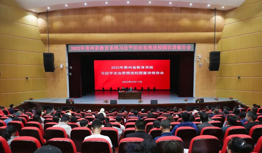 根据教育厅要求及学校工作安排,5月17日下午,学校在大礼堂举办贵州省教育系统习近平法治思想进校园宣讲报告会,贵州省教育厅法学专家宣讲团成员、贵州大学范电勤副教授作宣讲报告。党委委员、副校长于立群主持报告会,在家校领导、教职工及学生代表参加。