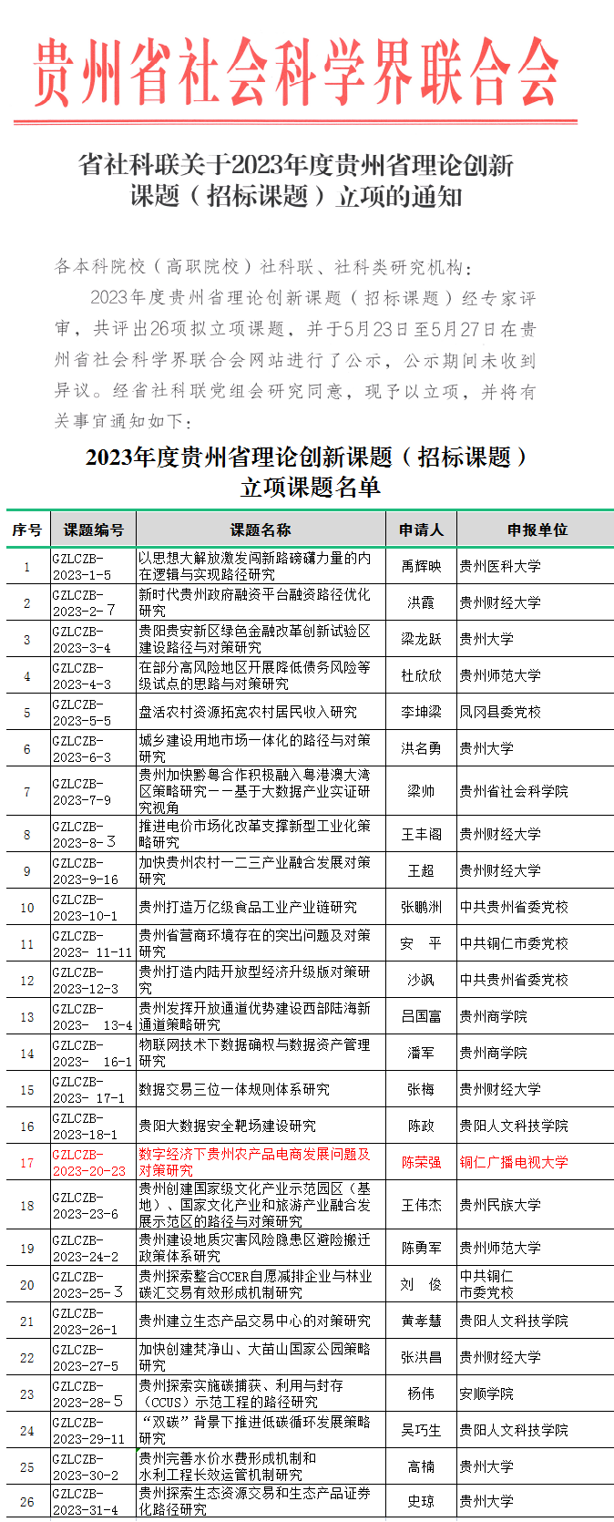 近日,喜报频传,铜仁广播电视大学申报的2023年度贵州省理论创新课题(招标课题)和贵州开放大学课题全部成功立项。