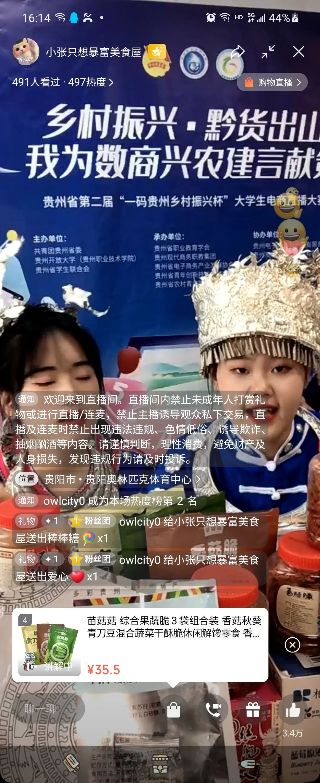 2022年5月,贵州省第二届“一码贵州·乡村振兴杯”大学生电商直播大赛顺利启动,本次大赛由共青团贵州省委、贵州开放大学(贵州职业技术学院)、贵州省学生联合会联合主办,初赛有来自66所高校的585支队伍参加。经过专业评审对初赛直播短视频的盲评,最终有351支队伍进入大赛复赛。