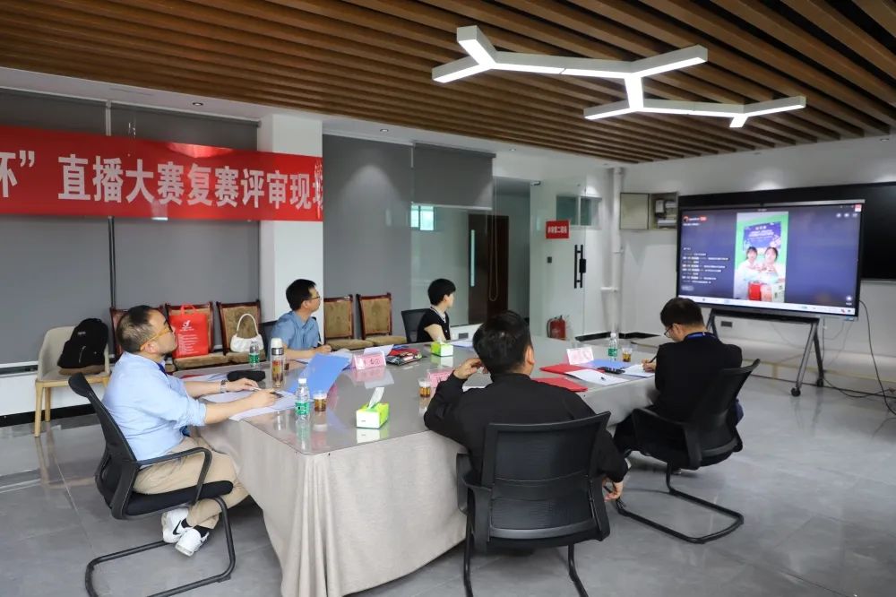 6月6日、7日,直播大赛复赛线上直播展示评审在我校举行。学校党委委员、副校长汪红与大赛组委会、评审专家召开评审工作会,强调要坚持公平、公正、公开原则,同时对支持本次大赛的专家评审、行业企业致以诚挚的问候和衷心的感谢。