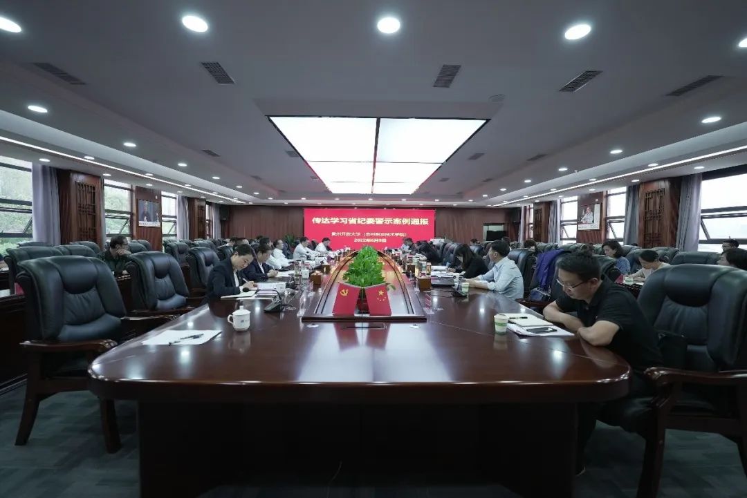 6月9日,贵州开放大学(贵州职业技术学院)党委召开2022年度党委理论学习中心组(扩大)第4次学习会,会上认真传达学习了省纪委省监委关于省内某地严重违反中央八项规定精神案例的通报。学校党委书记宋广强在会上就以案为鉴、汲取深刻教训提出纪律要求。学校全体校领导、各学院党政主要领导、各部门负责人近40人参加会议。