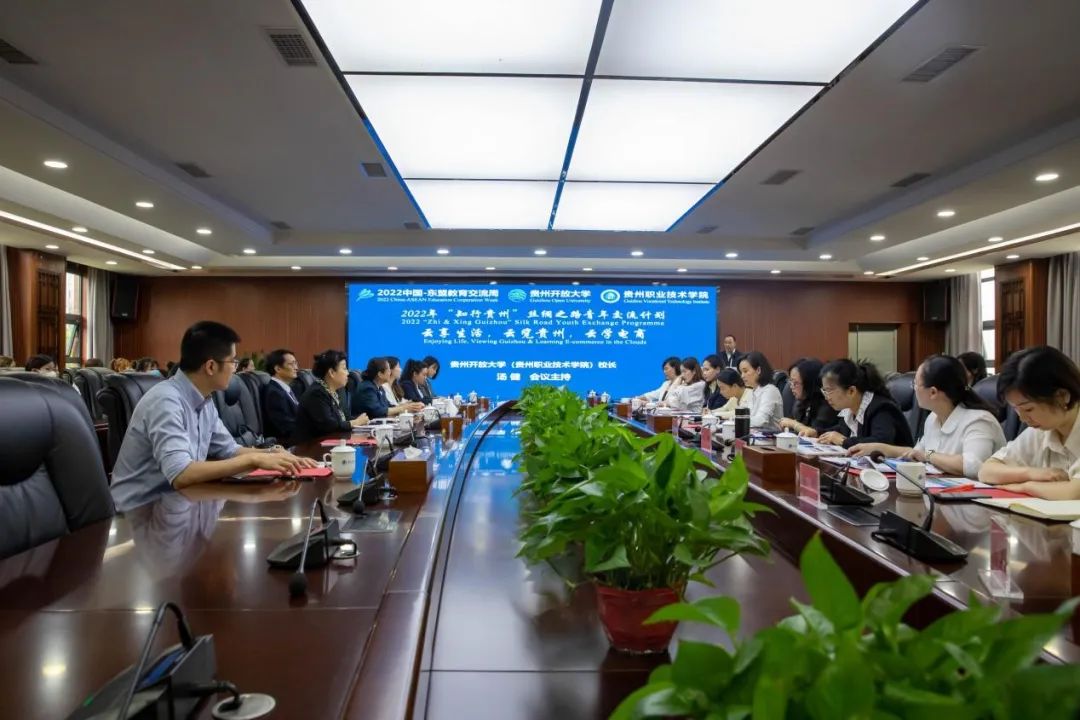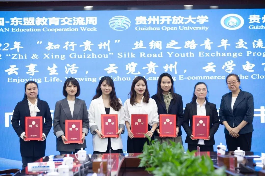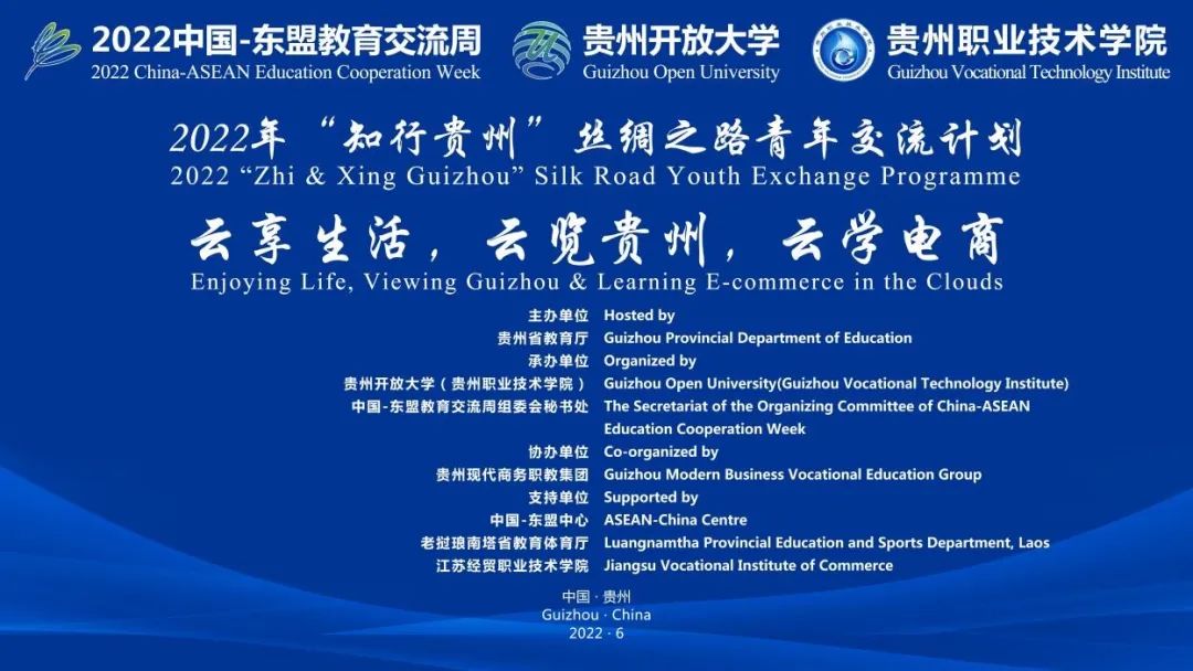 6月20日上午,由贵州省教育厅主办、贵州开放大学(贵州职业技术学院)与中国-东盟教育交流周组委会秘书处承办、贵州现代商务职教集团协办,并得到中国—东盟中心、老挝琅南塔省教育体育厅、江苏经贸职业技术学院等单位大力支持的“2022年‘知行贵州’丝绸之路青年交流计划——云享生活,云览贵州,云学电商”项目开班仪式在贵州开放大学(贵州职业技术学院)隆重举行。