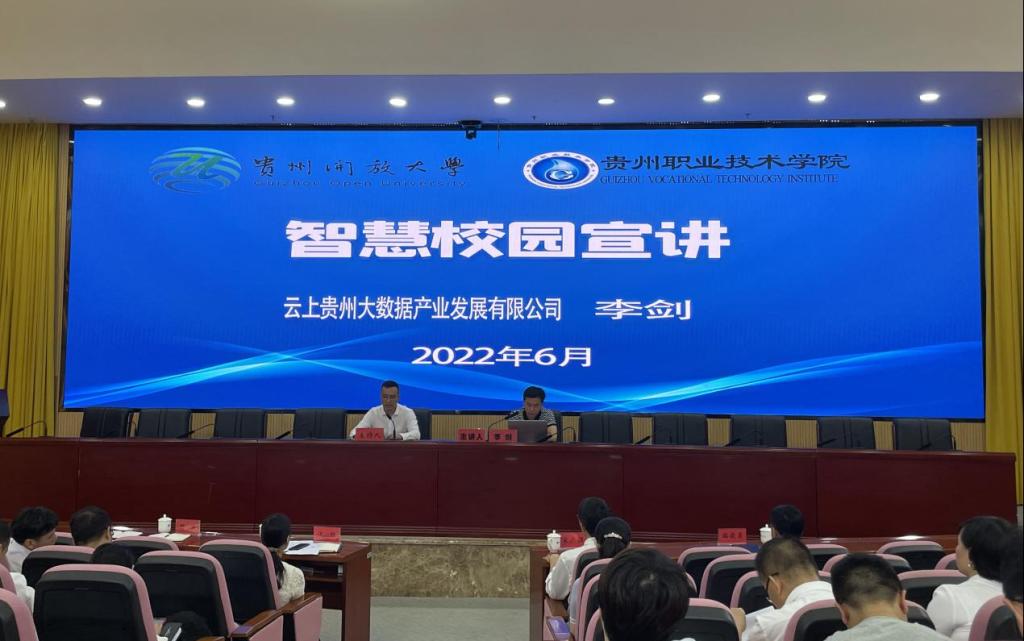为加强学校智慧校园总体建设,助推学校高质量发展,6月28日,我校在云潭南路校区行政楼9楼会议室召开了智慧校园宣讲会。学校党委书记宋广强,党委委员、纪委书记骆最勇,党委委员、副校长汪红,党委委员、宣传部、统战部部长何滨出席会议,学校副科级以上干部参加了会议。会议由网络与信息中心主任杨家兴主持,云上贵州大数据产业发展有限公司教育行业总监李剑进行智慧校园宣讲。