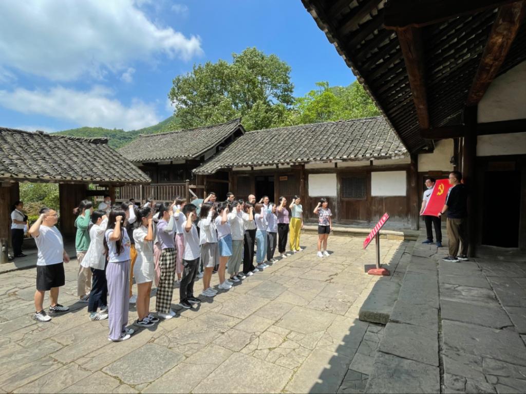 在苟坝会议会址,现场讲解员向全体学员介绍了“一盏马灯”照亮革命的故事,老师们面向鲜红的党旗重温了入党誓词,参观了苟坝会议陈列馆、毛泽东住所地、红军马灯馆等地,在绿色田野中沿着伟人坚守真理的足迹,重走毛泽东小道。