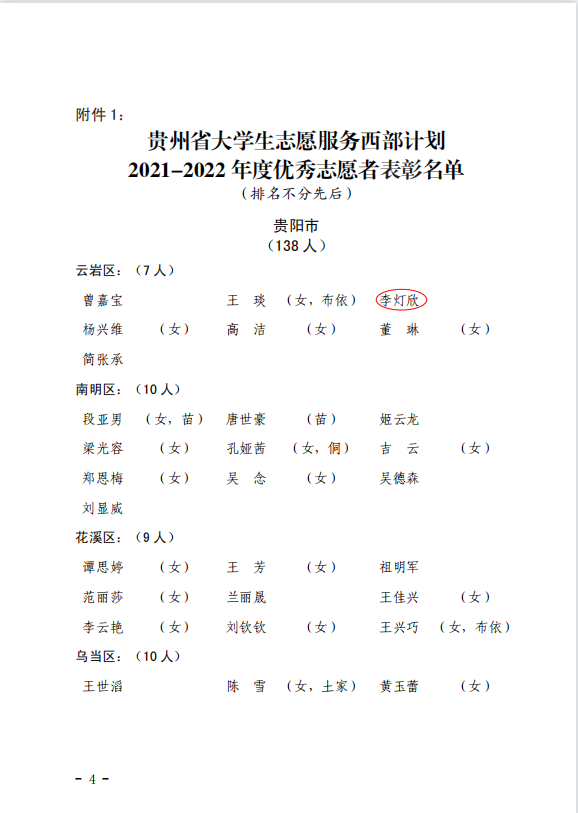 近日,贵州省志愿者协会、贵州省大学生志愿服务西部计划项目管理办公室联合印发《关于表彰贵州省大学生志愿服务西部计划 2021—2022 年度优秀志愿者、优秀研究生支教团、优秀项目办的决定》,我校“西部计划”项目办(校团委)获得“优秀高校项目办”,李灯欣等12名服务于贵州基层一线的“西部计划”志愿者获得“优秀志愿者”称号。
