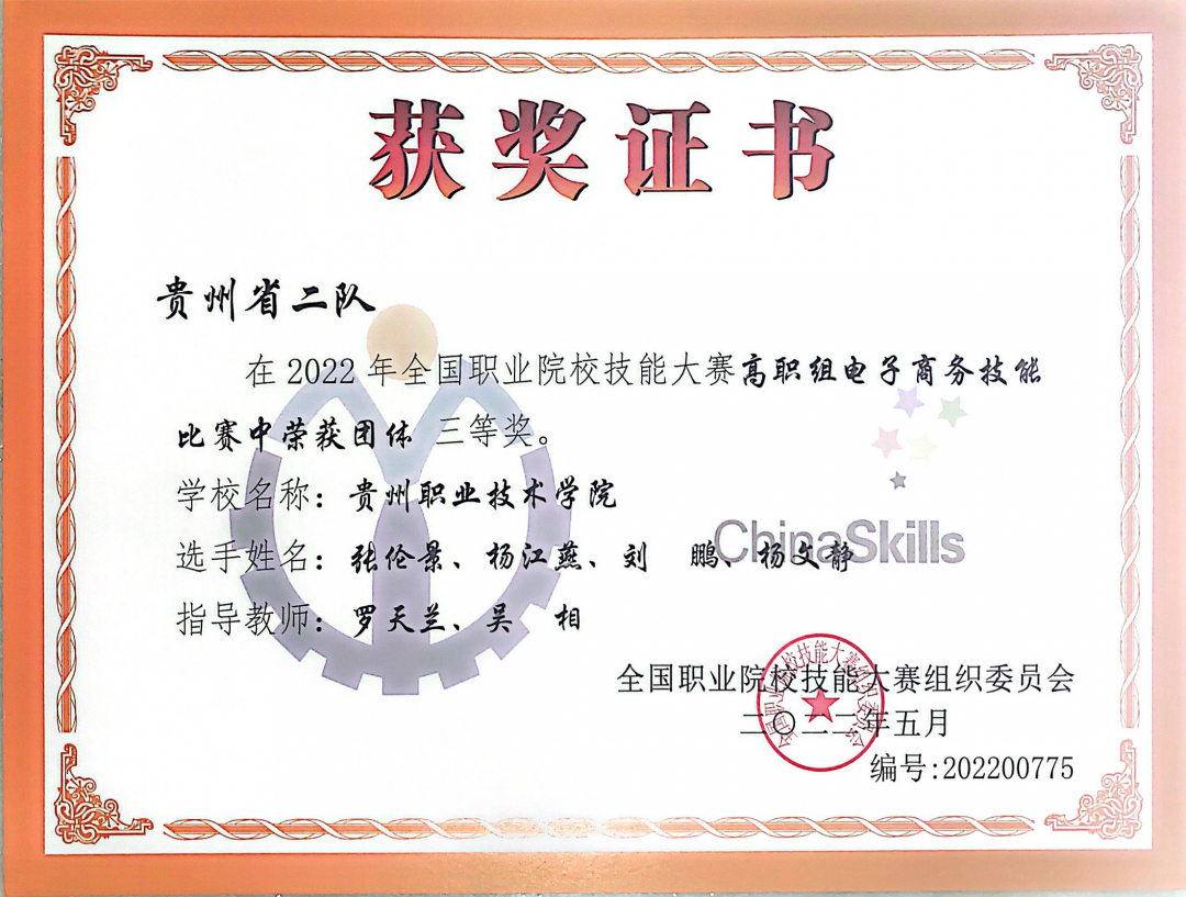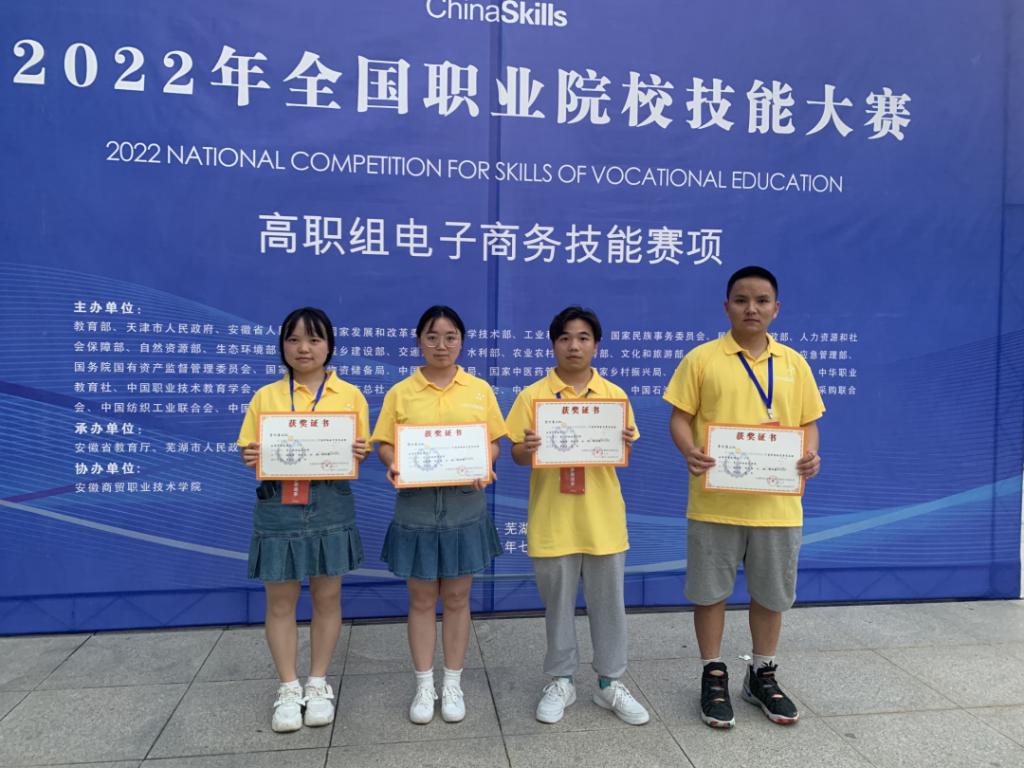 7月31日,2022年全国职业院校技能大赛高职组电子商务技能比赛顺利闭幕。由我校商业与贸易学院教师罗天兰、吴相指导的电子商务专业学生刘鹏、杨文静、张伦景和杨江燕同学荣获团队三等奖。