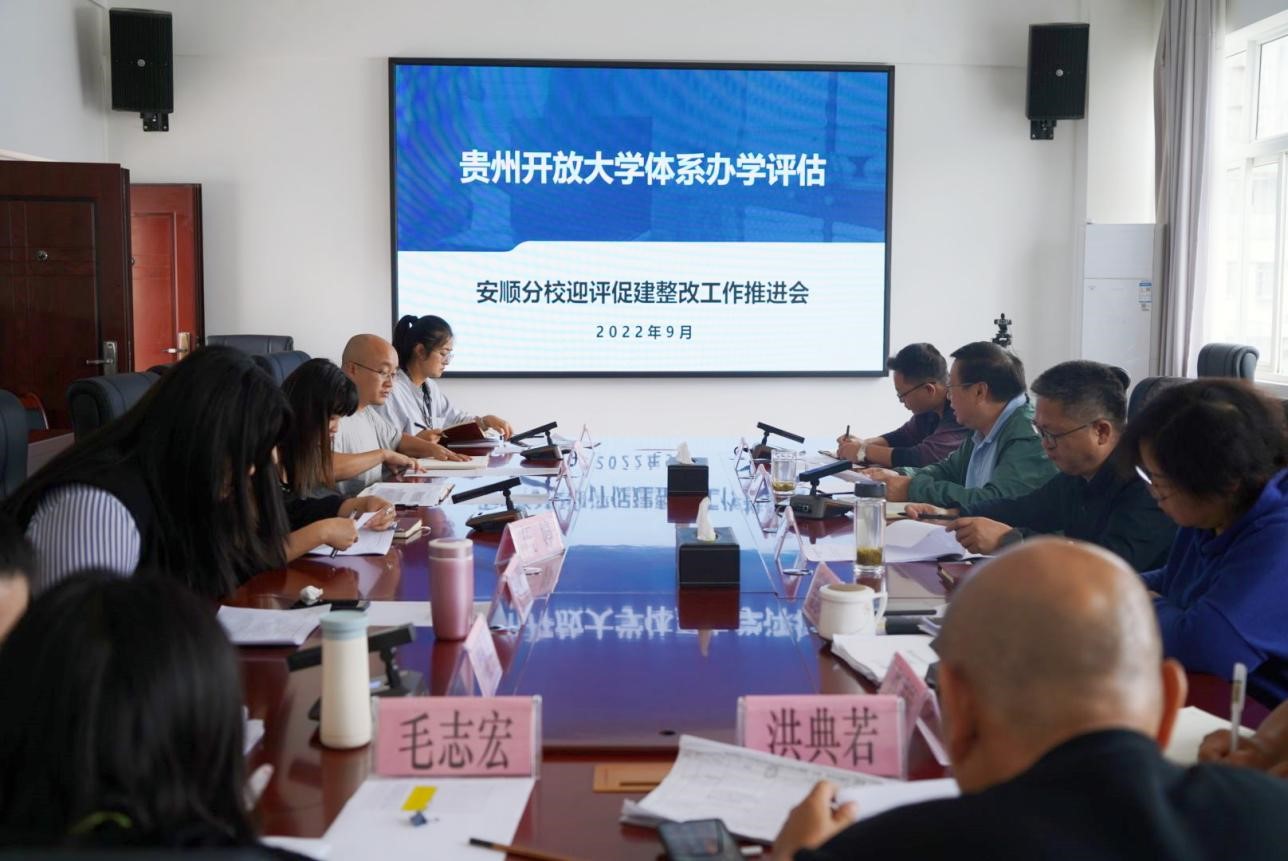为进一步做好办学评估整改工作,顺利迎接国家开放大学办学评估,9月14日下午,安顺广播电视大学召开迎评促建整改工作推进会。党总支书记、校长杨启肥,党总支委员、副校长陈劲松、金惠琼以及全体中层干部参加会议,会议由副校长陈劲松主持。
