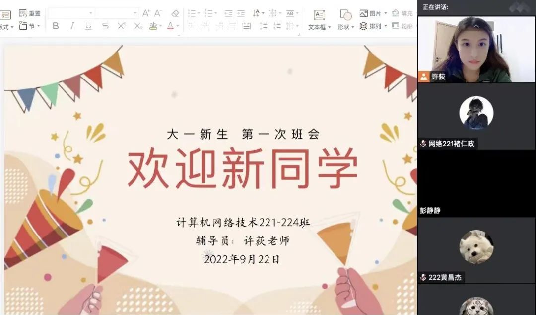 夏色已去,秋声渐闻。在这丰收的季节,我校迎来了2022级新生。受近期严峻的疫情防控形势影响,本次新生报到采取了线上报到的形式,为帮助新生们尽快了解新学校、适应新生活、树立新目标,完成身份角色转变,更好地开启大学生活,并以良好的精神风貌投入居家线上学习中,商业与贸易学院的老师们高度重视,认真组织策划,于9月22日线上开展了2022级新生“开学第一课”主题班会活动。新生辅导员们认真准备、精心组织,确保主题班会顺利开展。