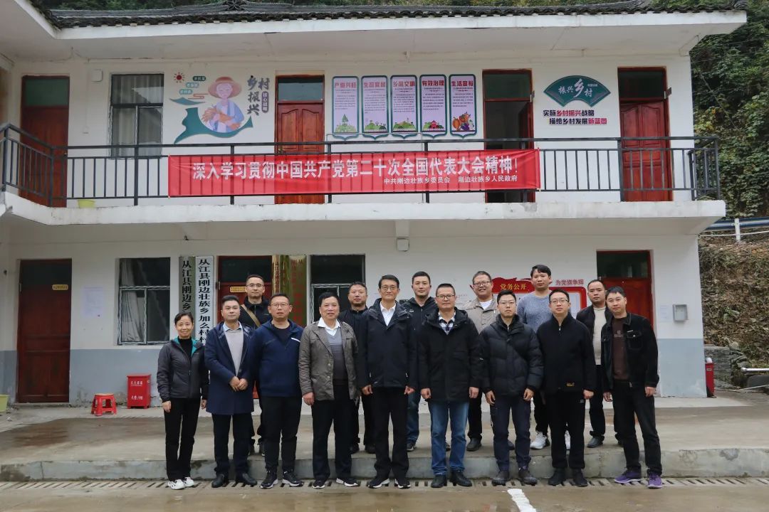 为深入学习宣传贯彻党的二十大精神,切实把党的二十大精神及时准确传达到基层、到农村,把思想统一到党的二十大精神上来,2022年11月15日至16日,学校党委书记宋广强、党委副书记钱庆生带领学校办公室、党委组织部有关同志一行前往学校帮扶村宣讲党的二十大精神并开展调研。