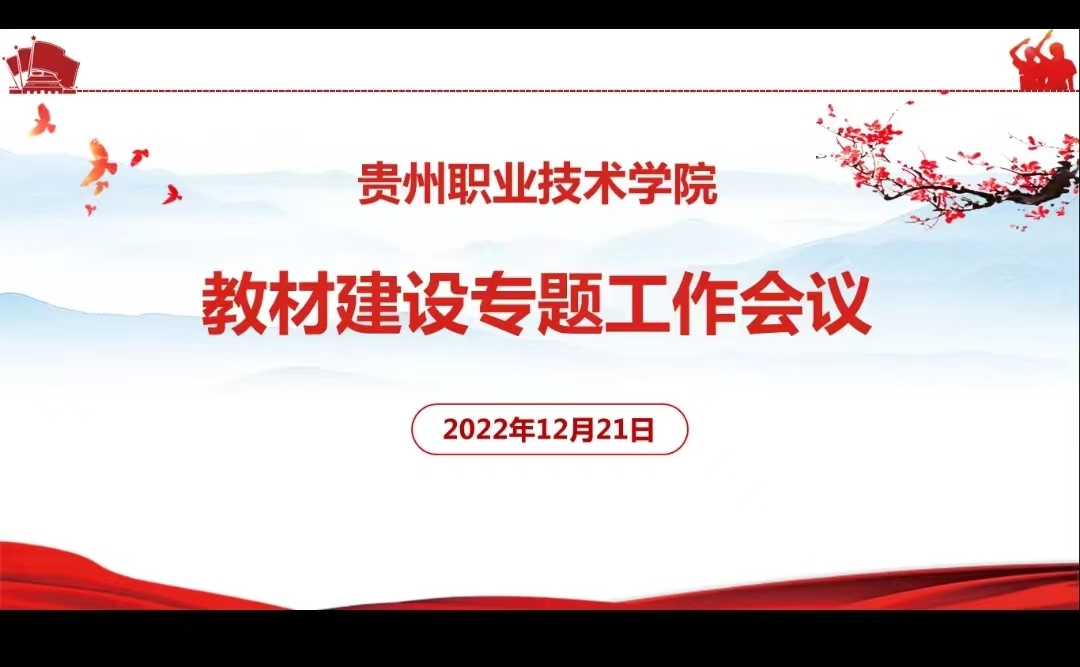党委副书记、校长汤健指出,教材建设是学校搞好教学最基础性的工作,也是深化“三教”改革、实施人才培养和守住意识形态阵地最为关键的工作,各部门要深入学习习近平总书记关于教材工作的重要指示批示,学习教育部、教育厅关于教材建设工作的政策文件精神,将相关精神和要求落实到学校教材建设与管理工作中。他就持续做好学校教材工作提出四点要求:一是要把准政治方向,落实教材管理工作要求。要落实好新时代教材工作的新要求,凝聚智慧和力量,在学校教材建设工作中推动各项制度、规定和要求落地实施;二是要规范工作流程,完善教材管理薄弱环节。各部门要充分发挥职能,完善配套制度,规范工作流程,补齐教材工作中的短板弱项;三是要层层压实责任,提高教材管理工作水平。各部门要明确在教材工作中应履行的职责和应承担的责任,要做到各负其责、各司其职,让教材工作质量有保证,责任可追溯;四是要创新工作思路,加大教材建设支持力度。学校将加大各方面的投入,鼓励各学院积极申报职业教育规划教材建设,鼓励在满足条件和要求的基础上编写紧缺领域、新形态教材,鼓励对纸质教材进行数字化改造,提升教材建设质量。要凝聚力量在推动学校高质量发展的新起点上,进一步开创高质量教材体系建设新局面。