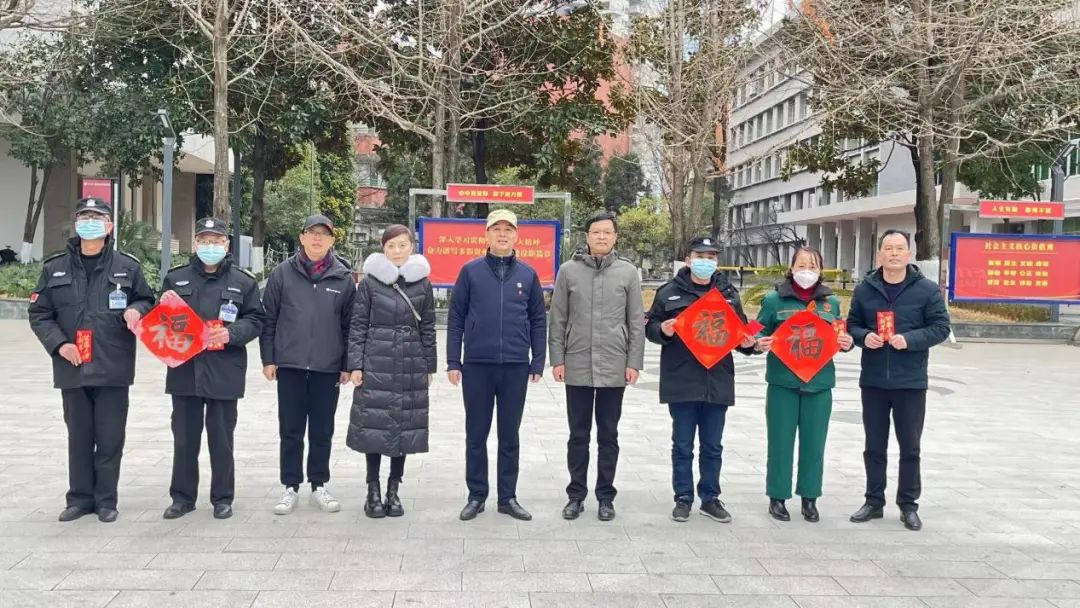 虎归兔跃春意浓,寅旧卯新宏图展。2023年1月22日,农历正月初一,学校党委副书记、校长汤健带队看望慰问八鸽岩校区和云潭南路校区的安保和后勤等基层一线人员以及值班教职工,仔细了解他们的工作和生活情况,代表学校感谢他们在节日依然坚守岗位并向大家致以节日的问候和新春的祝福。