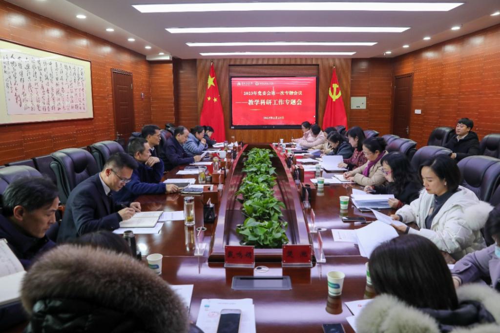 2月23日下午,学校召开2023年党委第一次专题会议,专门研究教学科研工作。学校党委领导班子成员,办公室、教务处、科研处、质量办、开放教育事业部、开放教育学院负责人及各二级学院(部)院长(主任)参加会议。会议由党委书记宋广强主持。