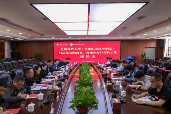为贯彻落实党的二十大精神和省第十三次党代会精神,进一步加强对口帮扶协作,扎实做好巩固拓展脱贫攻坚成果与乡村振兴有效衔接。2023年4月3日下午,我校对口帮扶点从江县刚边乡党委书记梁吉第和秀塘乡党委书记甘典华带队到学校进行工作交流并开展座谈。学校党委书记宋广强、党委副书记钱庆生以及学校办公室、党委组织部、开放教育学院(乡村振兴教育学院)、学校驻村第一书记和驻村队员等有关同志参加了座谈会。会议由党委委员、组织部部长张仁俊主持。