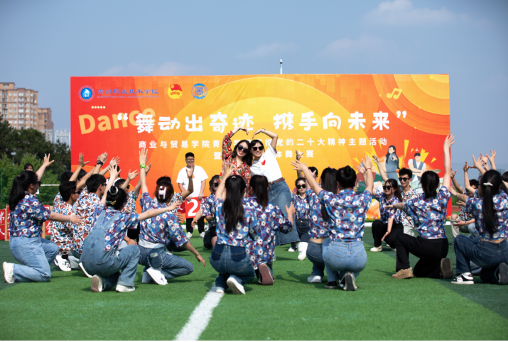 为进一步引领青年学习贯彻党的二十大精神,以习近平新时代中国特色社会主义思想为指导,以实际行动积极践行党的创新理论,展示新时代青年的昂扬姿态,加强班级凝聚力,丰富校园文化生活,4月18日,商业与贸易学院以“舞动出奇迹 携手向未来”为主题,在学校足球场开展青年学习贯彻党的二十大精神主题活动暨2023年集体舞大赛。学校党委书记宋广强、党委副书记钱庆生出席活动,团委书记李雪芬、团委副书记范少华、商业与贸易学院领导班子现场观看。