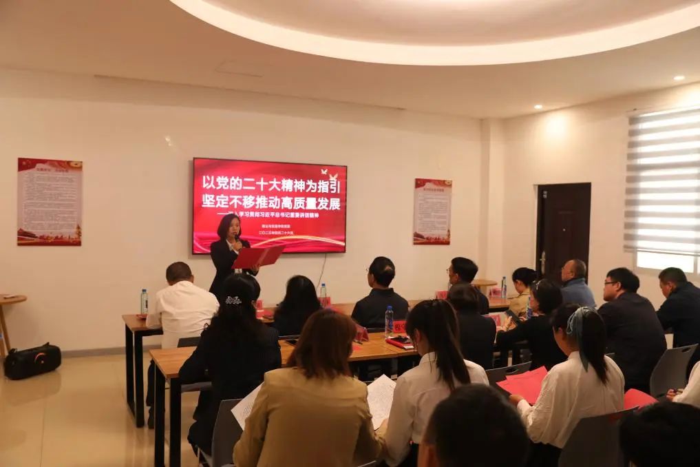 政治理论学习在党员培育中心进行,党员同志们观看了各党支部录播的微党课视频后,由学院党委副书记、院长袁德臻同志领学“第一议题”内容,随后向参加活动党员发放初心卡,带领大家重温了入党初心。