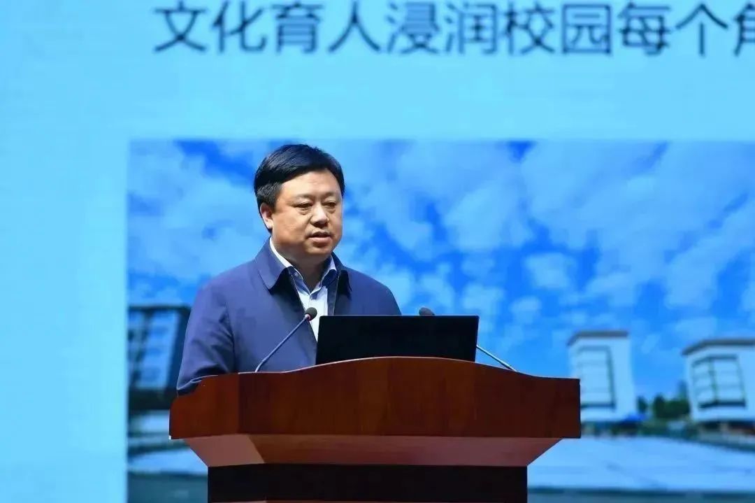 贵州省教育厅副厅长、党组成员,省委教育工委委员杨天仪讲话。他表示,职业教育是工匠的摇篮,各高职院校要充分认识职业教育发展对贵州特色教育强省建设和经济社会发展的重要性,抓好政策落地衔接,加大校园文化建设的投入,积极优化校园环境,创新校园文化活动形式,不断丰富校园文化内涵,用具有职业院校特色的校园文化涵育时代新人,推动职业教育高质量发展。他希望,各高职院校要在站位上进一步对标,让职教文化引领新航向。在载体上进一步创新,让职教文化唱响主旋律。在举措上进一步夯实,让职教文化更自信。更好发挥校园文化在培养更多高素质技术技能人才、能工巧匠、大国工匠中的重要作用,全力做好职业院校学生思想政治引领和成长成才赋能。