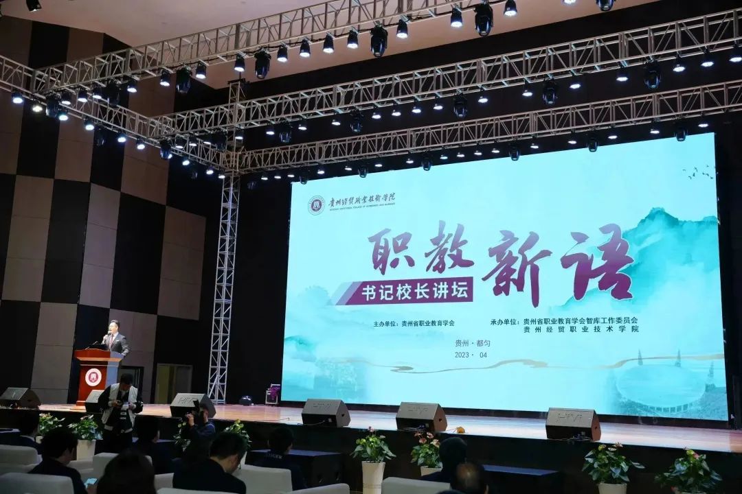 此次讲坛由贵州省职业教育学会主办,贵州省职业教育学会智库工作委员会、贵州经贸职业技术学院承办。贵州省教育厅党组成员、副厅长,省委教育工委委员杨天仪,贵州省职业教育学会会长、贵州开放大学(贵州职业技术学院)校长汤健,贵州省黔南州委常委、州政府常务副州长、州政府党组副书记丁毅出席,贵州各高职院校书记院长及相关部门负责人参加会议。贵州广播电视台新闻联播主持人苏东方主持。