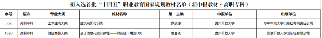 5月8日,教育部职业教育与成人教育司发布《关于拟入选首批“十四五”职业教育国家规划教材名单的公示》,我校《建筑制图与识图》《会计信息化实训教程——财务链(用友U8)》2本教材入选首批“十四五”职业教育国家规划教材名单(新申报教材·高职专科),实现了我校主编国家规划教材零的突破!