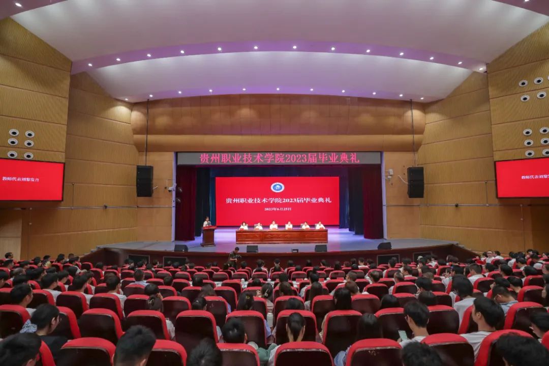 典礼上,党委委员、副校长李勤宣读了《贵州职业技术学院关于批准2023届5031名高职学生毕业的决定》,纪委书记骆最勇宣读了《贵州职业技术学院关于表彰2023届校级和省级优秀毕业生的决定》。学校领导向毕业生代表颁发了毕业证书,党委书记宋广强为优秀毕业生代表颁发了获奖证书。