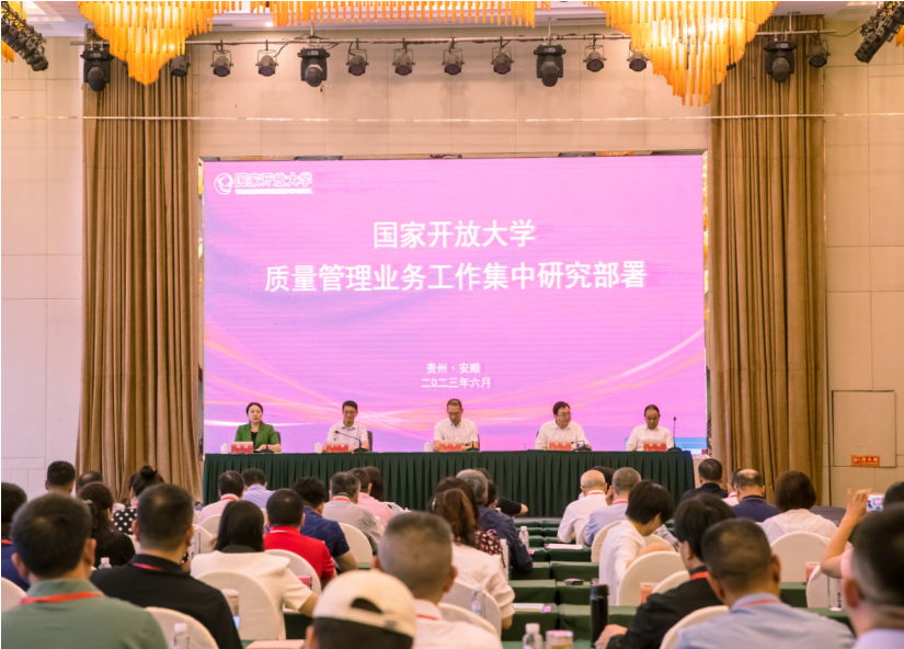 6月26日,国家开放大学教学质量业务研究部署工作会在贵州安顺成功举行,贵州开放大学党委书记宋广强,党委副书记、校长汤健,国家开放大学党委委员、副校长李松,安顺市政府党组成员、副市长栾雁,贵州省教育厅职成处有关负责同志和来自国家开放大学、全国各地方开放大学的校领导及其办学系统质量管理部门和分校的主要负责同志,以及直属专门学院校领导、全国行业开放学院等有关领导、部门负责人200余人出席会议,共谋开放大学高质量发展大计,集中部署开放教育质量工作。
