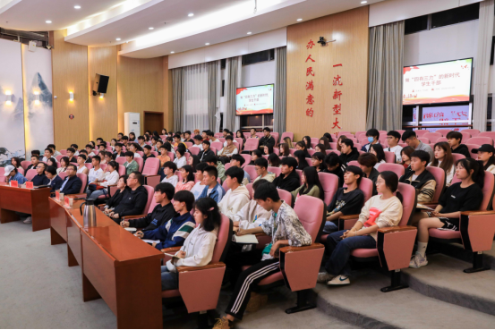 于立群以“做‘四有三力’的新时代学生干部”为题进行开班第一讲。讲座主要围绕什么是学生干部,从思想认识、实践要求上怎么成为新时代学生干部三个部分展开。希望学生干部能够发挥好桥梁纽带作用和示范引领作用,在主观认识上做到有志向、有思想、有担当、有修养;从实践要求的角度出发,要求学生干部注重意志力、亲和力、表达力的培养。整场讲座主题鲜明、内容丰富,气氛热烈。
