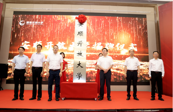 2023年6月26日上午,安顺广播电视大学更名揭牌仪式在安顺市铂瑞兹酒店举行。国家开放大学副校长李松、安顺市人民政府党组成员、副市长栾雁、贵州开放大学党委书记宋广强、贵州开放大学党委副书记、校长汤健、贵州省教育厅职成处副处长张禄海以及全国开放大学部分分部领导、省内电大分校负责人、市教育局相关领导、全市电大系统工作站负责人、电大教职员工、学生代表、新闻媒体代表共同见证了安顺广播电视大学校史镌刻的历史性时刻,共同开启安顺开放大学崭新的一页。揭牌仪式由安顺市教育工委副书记、教育局长彭洪主持。