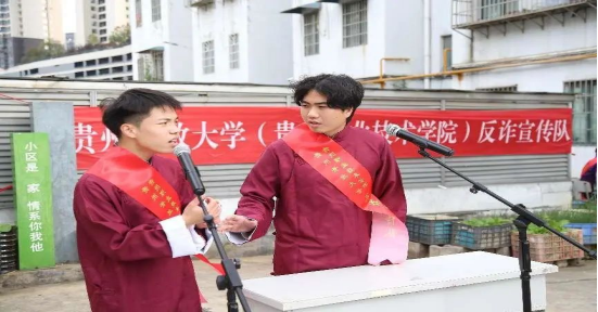 “真的太棒了,同学们今天的表现真的太棒了,超常发挥,真情表演!”学校保卫工作部工作人员感动的说。今年9月,学校保卫工作部按照学生安全法治教育实施方案的要求,组织各学院成立了反诈宣传队,老师和同学们积极报名,在校园内开展了多种形式的反诈宣传活动。为了持续推进反诈宣传工作,全面提升全民反诈意识,践行高校服务当地社会经济发展的责任,反诈宣传队把防骗知识融入文艺节目中,认真编写剧本、编排节目,对每一个节目进行精心打磨和排练,策划了这场反诈宣传文艺表演活动,拉开了学校反诈宣传进社区的序幕。旨在通过创新反诈宣传形式和内容,创作群众喜闻乐见的文艺作品,构建覆盖更广的宣传体系和更加坚固的反诈防线,切实增强群众抵制电信诈骗的“免疫力”,帮助群众牢牢守住“钱袋子”。