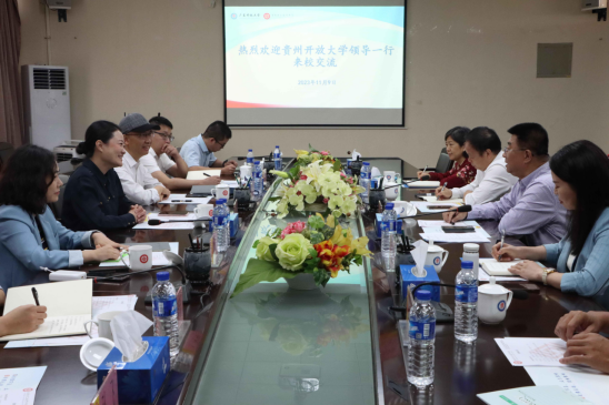 率先践行“校企深度融合协同办学”先行军作用,率先践行“积极应对人口老龄化”排头兵作用,形成“先行示范效应”和“全国典型案例”,值得我校积极学习借鉴。于立群说,同饮一江水的广东与贵州,地缘相近、人缘相亲,双方学校在历史沿革、体制机制、发展路径等方面有诸多相似之处,当借力东西部协作东风,续开放教育情缘,谱职业教育新篇。贵州开放大学作为集开放教育、职业教育和终身教育于一体的新型大学,正全力实施围绕“四新”主攻“四化”主战略、实现“四区一高地”主定位,大力推进开放教育“提质增量”,聚力职业教育“提质培优”,凝练优化一体两翼三融合四提升的“1234”办学思路,努力走出一条以终身教育“拼图”填充特色教育强省“整图”高质量发展之路。希望两校坚持优势互补、亲上加亲、共同发展,在协作领域再突破、人才交流再深化、合作项目再丰富上持续发力、久久为功,携手打造深化东西部协作开放大学典范,努力推动粤黔教育协作迈上新台阶。