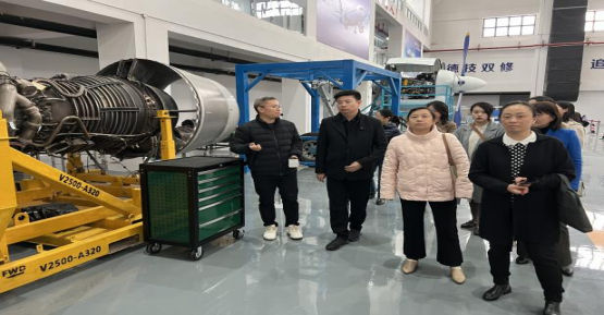 调研组一行参观了我校建筑工程学院古法营造实训室、商业与贸易学院全息体验馆、航空学院航空产教融合实训室。