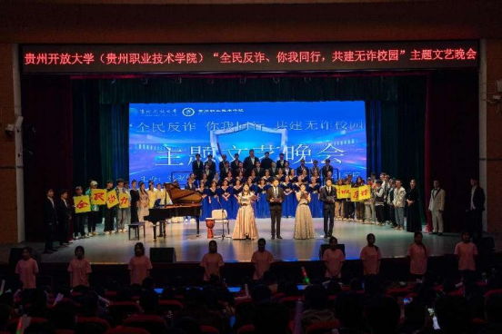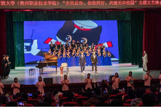 2023年11月27日晚,由学校党委保卫工作部和艺术与设计学院共同举办的“全民反诈、你我同行,共建无诈校园”主题宣传晚会在我校大礼堂上演,给近千名师生带来了一场反诈宣传精神盛筵。省委政法委、省教育厅、公安厅,观山湖区政法、公安以及属地政府、派出所有关领导嘉宾,学校分管领导出席晚会。