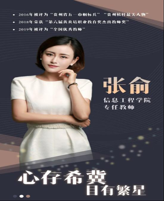 张俞老师热爱教学,由于教学能力突出,于2014年代表贵州省参加由教育部主办的第五届“凤凰创壹杯”全国职业院校信息化教学大赛,代表贵州省首次进入决赛并获全国三等奖;为帮助年轻教师提升数字教育技术水平,于2022年带领青年教师参加教师教学能力大赛,获得国赛三等奖、贵州省一等奖的好成绩,为学校争得了荣誉;她主持的省级精品课程《现代交换技术》被评为省级优秀精品课程,目前在线学习人数达3100余人,为贵州乃至全国的学习者提供开放的优秀教学资源。
