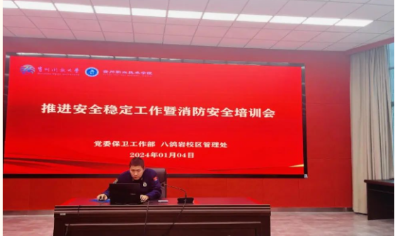 为牢固树立安全发展理念,系统防范化解消防安全重大风险,全面提高防灾减灾救灾能力,推动学校消防工作高质量发展。2024年1月4日上午,学校保卫工作部、八鸽岩校区管理处联合北京路派出所、八鸽岩社区、云岩区消防大队八鸽岩消防站,在我校八鸽岩校区举办了一场消防安全培训系列活动。学校党委书记令狐彩桃,党委委员、副校长林长松,党委委员、副校长周勇观摩了此次活动。