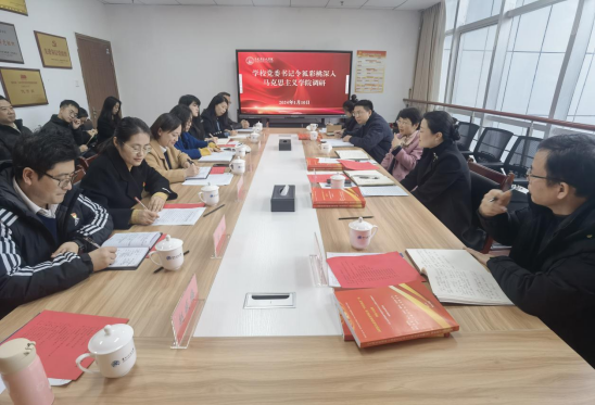 2024年1月10日上午,学校党委书记令狐彩桃深入马克思主义学院开展调研工作。学校党委委员、副校长于立群,学校办公室主任、人事处(教师工作处)处长陈鹰,学校办公室副主任王红明陪同调研,马克思主义学院领导班子成员、党支部书记、科室负责人、教研室主任、教师代表参加调研座谈会,会议由学校党委委员、副校长于立群主持。