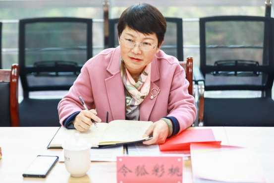 令狐彩桃书记认真听取工作汇报,对马克思主义学院工作给予充分肯定,并为学院未来发展问诊把脉,提出明确要求:一是要深刻认识马克思主义学院的主阵地属性,坚持立德树人根本任务,努力打造一批精品课程;二是要构建学院科研高质量发展新格局,通过教学科研互哺持续提升育人水平,全面推动马克思主义学院内涵式高质量发展;三是要加强学院教师队伍建设,以习近平总书记“六要”要求为引领,立德修身,锤炼本领,争做“四有”好老师;四是要以高质量党建引领学院高质量发展,充分发挥学院教师党员先锋模范作用,聚焦各个领域,高起点、高质量、高标准做出成绩,树立标杆、打造标志性成果。